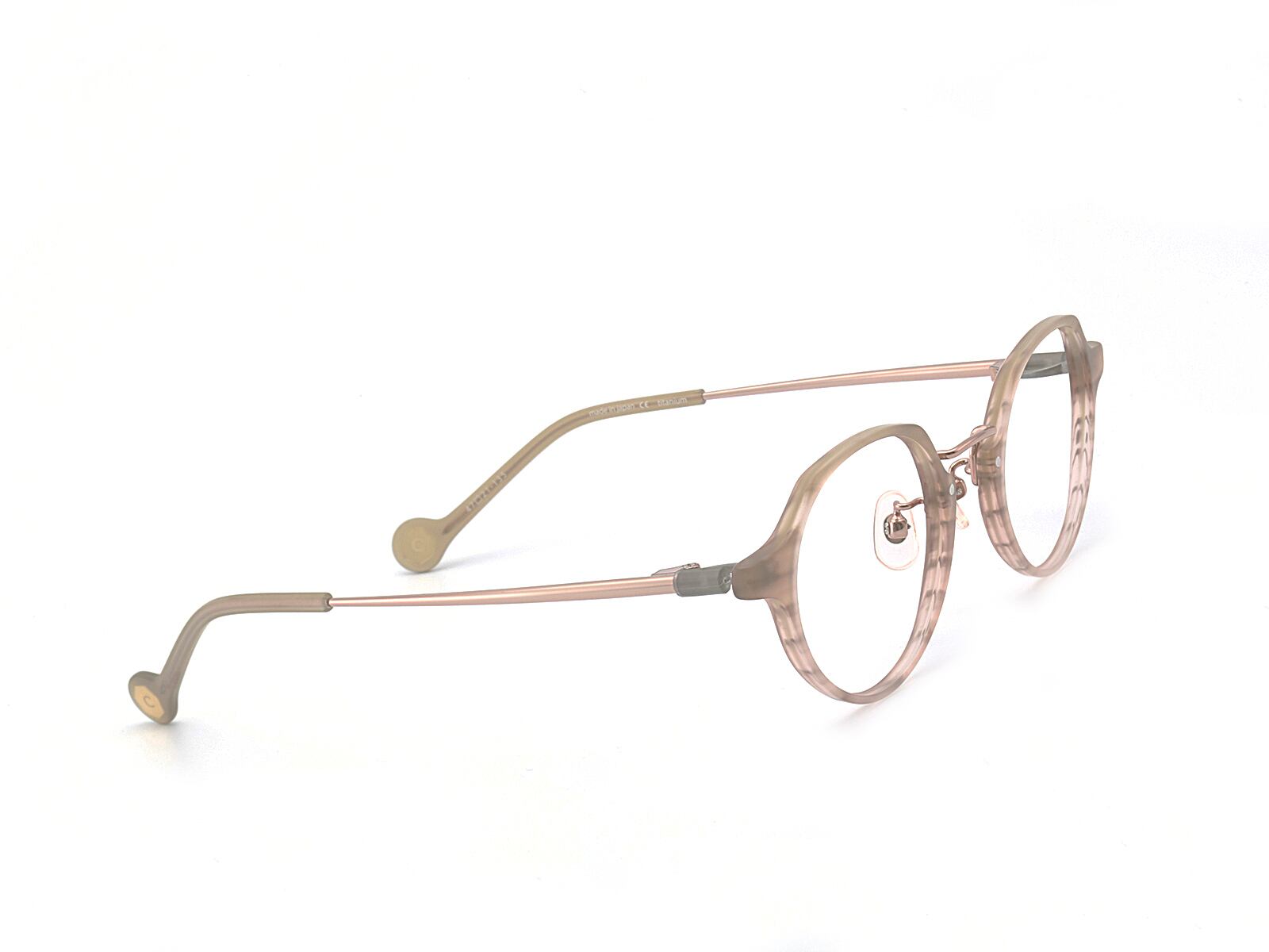 丸と角の両方を合わせもつシェイプが顔に馴染み、どんなお洋服にも合わせやすいモデルです。