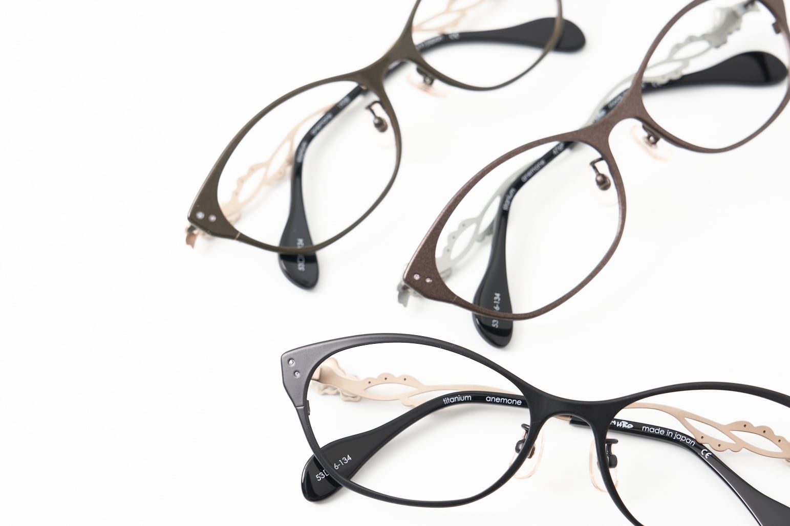 2024SSモデル。 風に吹かれて優雅に揺れるアネモネをテンプルのなだらかなラインで表現。 スワロフスキーを囲むブリオンや花びらを彩る七宝の色使いにこだわった大人可愛いラグジュアリーなフレームです。